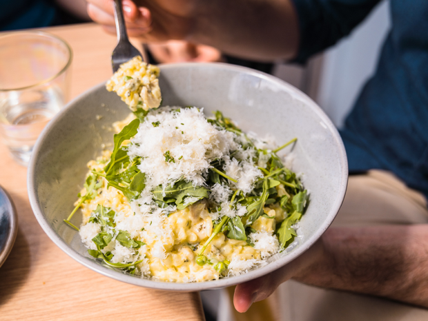 Mushroom, rosemary, green pea, rocket, pecorino cheese