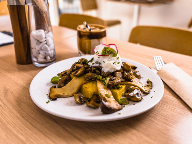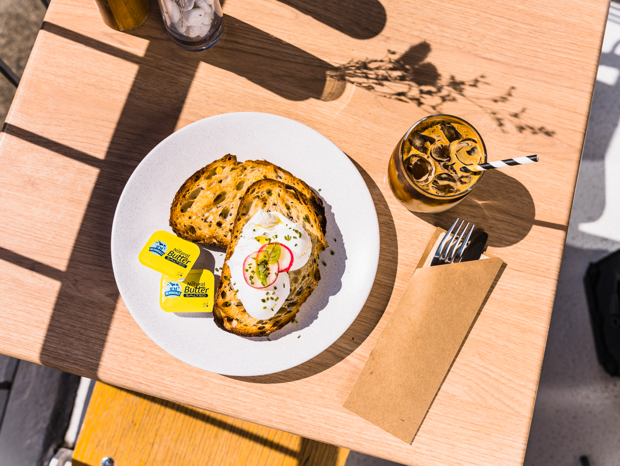 Free range poached eggs, chorizo, house made pomodoro sauce & soy linseed sourdough topped with pecorino cheese